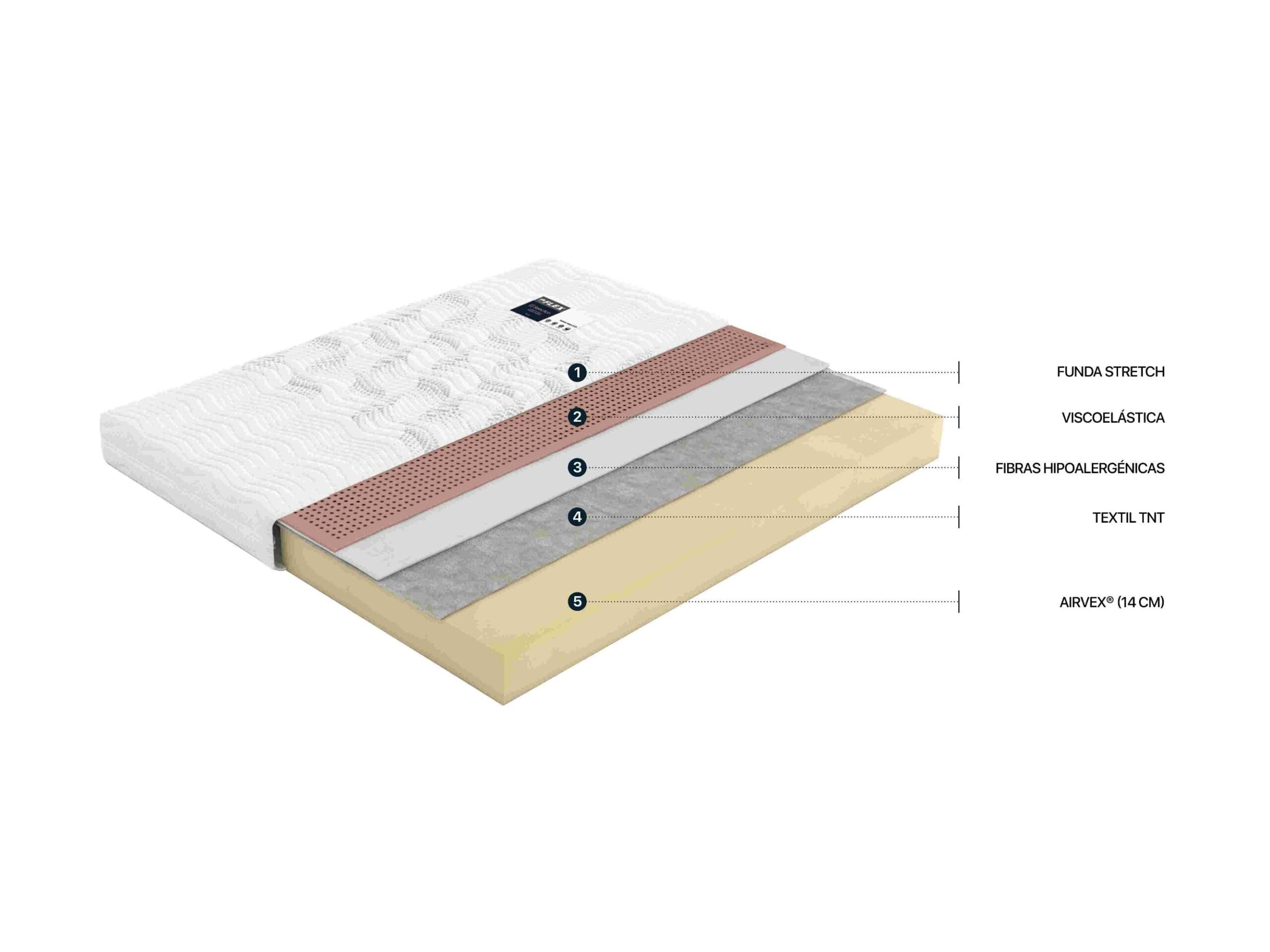 El colchón Flex Teknia esta especialmente diseñado para usarse en camas articuladas gracias a la flexibilidad, suavidad, y adaptabilidad de su bloque AirVex®. Este modelo incorpora una funda de alta calidad, acolchada con fibras hipoalergénicas y viscoelástica, para mejorar el confort durante las horas de sueño. Adecuado para personas con problemas en articulaciones y que necesiten una postura poco común para descansar.
